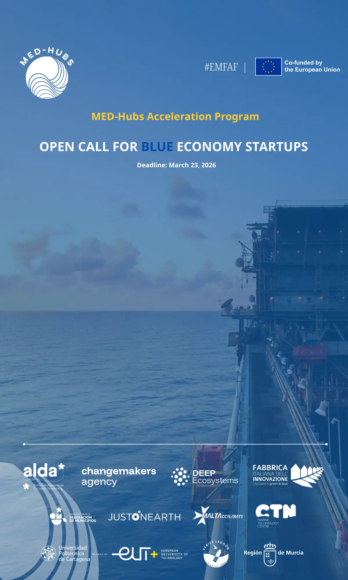 Maritime Innovation for Smart Specialisation in the Western Mediterranean: MED-Hubs is embarking on a 2-year journey to accelerate sustainable blue growth in the Western Mediterranean. Co-funded under EMFAF-2025-PIA-FLAGSHIP (Topic I3), the consortium will operate two interregional innovation hubs: one in Spain focused on marine renewable energy, and one in Italy focused on sustainable fisheries and aquaculture.